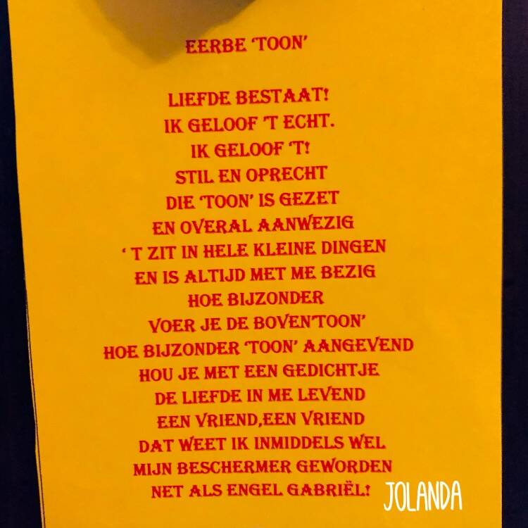 als´dankjewel´ voor de mooie gedichten en verhalen van Toon Hermans waar ik zoveel aan heb gehad en nog steeds heb. Ik heb het zelfs in Sittard echt op zijn graf gezet.