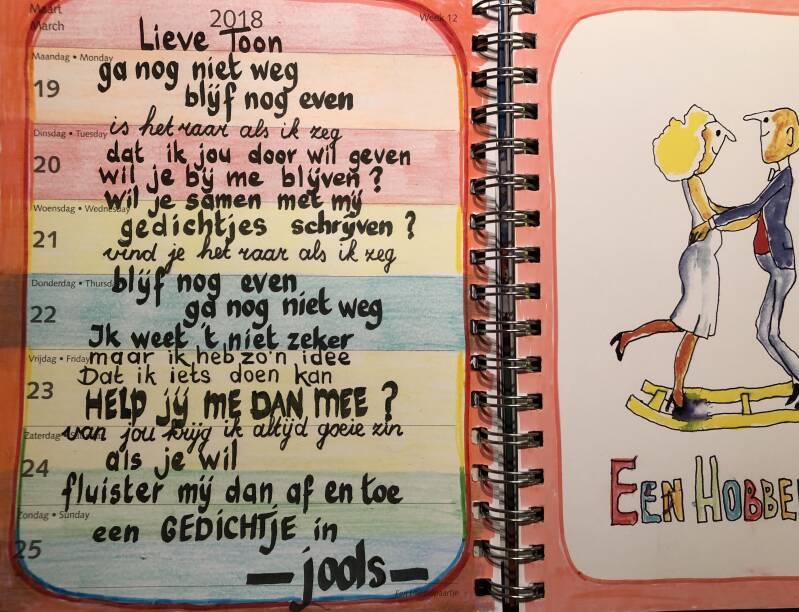 Meestal is dat een gedichtje van mezelf, maar ook weleens van Toon.