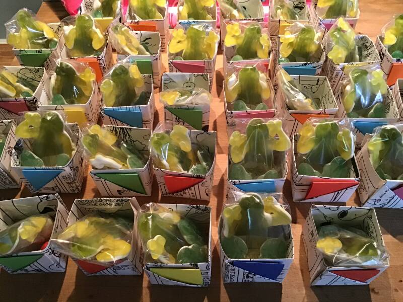 De inhoud? Snoepkikkers en stuiterballen!