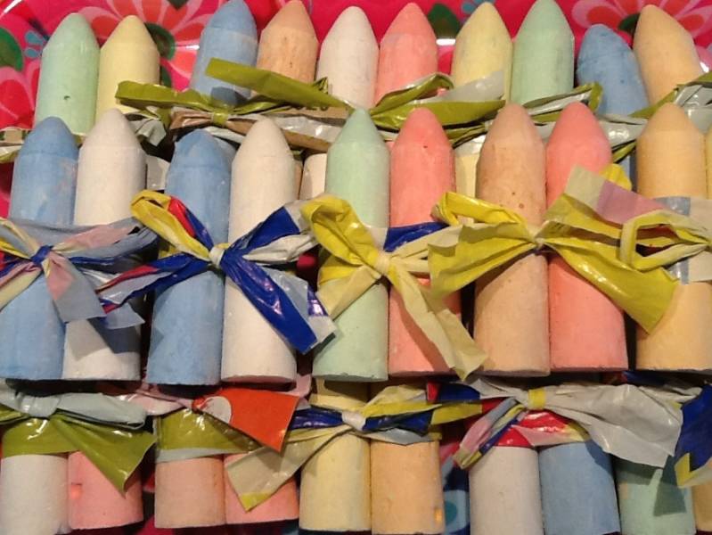 De stoepkrijt hoorde daar ook nog bij.